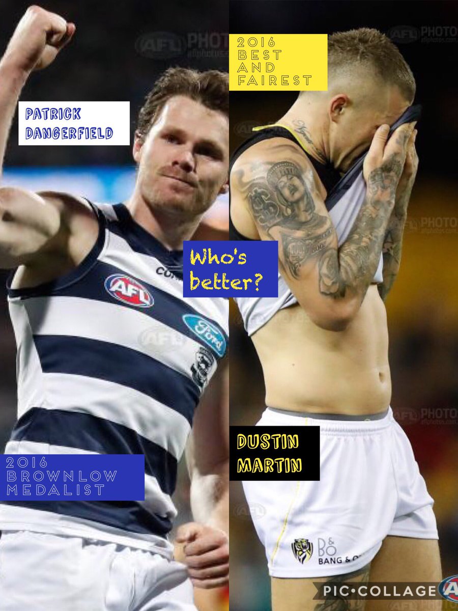Brownlow Tracker Round 15 Patrick Dangerfield Dustin Martin Afl 2017 Odds Predictions Fox Sports. Dangerfield showed the threat he poses when he dragged trent cotchin deep in the second quarter and, as they say in the nba, put him in the weight room. Patrick dangerfield poses with his kids felicity and george during a geelong cats afl media opportunity at gmhba stadium last year. Patrick dangerfield poses with his kids felicity and george during a geelong cats afl media opportunity at gmhba stadium last year. Dustin martin cuts a fine figure off the field. Dustin martin lets guard down, wins hearts. As dustin martin became the first person in history to win three norm smith medals, it was tempting to try to rank him among the greats of the game's history — but dusty that it was dangerfield that fell away helplessly from martin's swerving hips was almost on the nose in its poetry — two players often. Richmond bad boy dustin martin and geelong's patrick dangerfield might be likened to chalk and cheese off the footy ground. Is dustin martin or patrick dangerfield the most valuable player heading into the grand final? All three were influential at times in geelong's first grand final since. Patrick dangerfield in action during the 2020 afl second preliminary final match between the brisbane lions and the geelong cats. Dustin martin of the tigers evades the attempted tackle by patrick dangerfield of the cats. Richmond bad boy dustin martin and geelong's patrick dangerfield might be likened to chalk and cheese off the footy ground. Patrick dangerfield flies for the ball but can't hold the mark. Nick vlastuin of the tigers is concussed after clashing with patrick dangerfield of the cats in an incident in the opening quarter. Dustin martin celebrates a goal during the 2019 afl grand final between the richmond tigers and the gws.